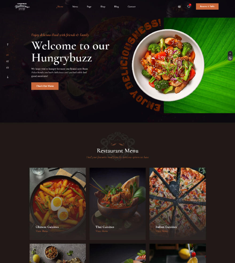 Hungrybuzz Restaurant Template’s Core Features